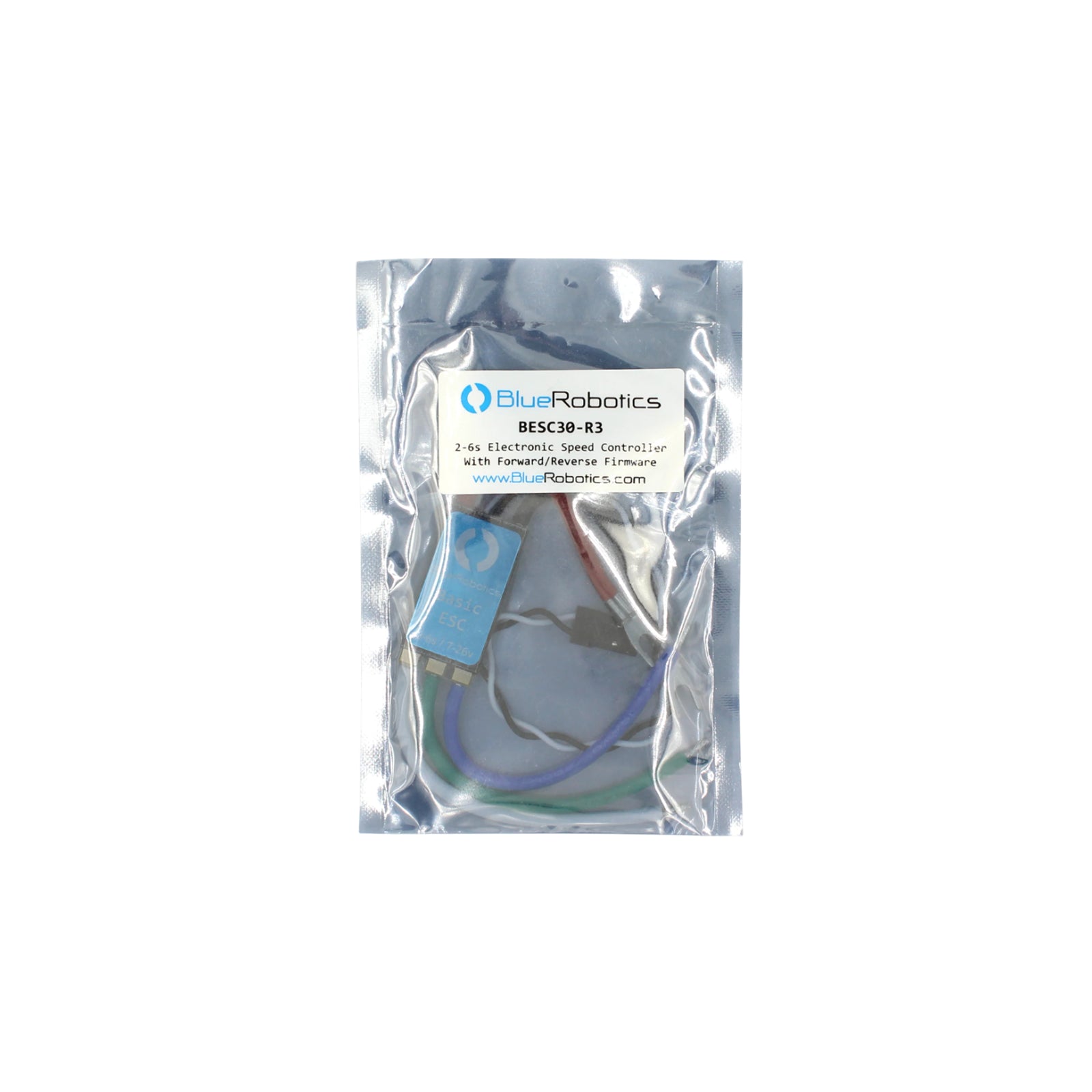 An electronic speed controller (ESC) is necessary to run any three-phase brushless motor like Blue Robotics’ thrusters and motors. This 30 amp ESC is sufficient for the T200 thruster and runs the BLHeli_S firmware.