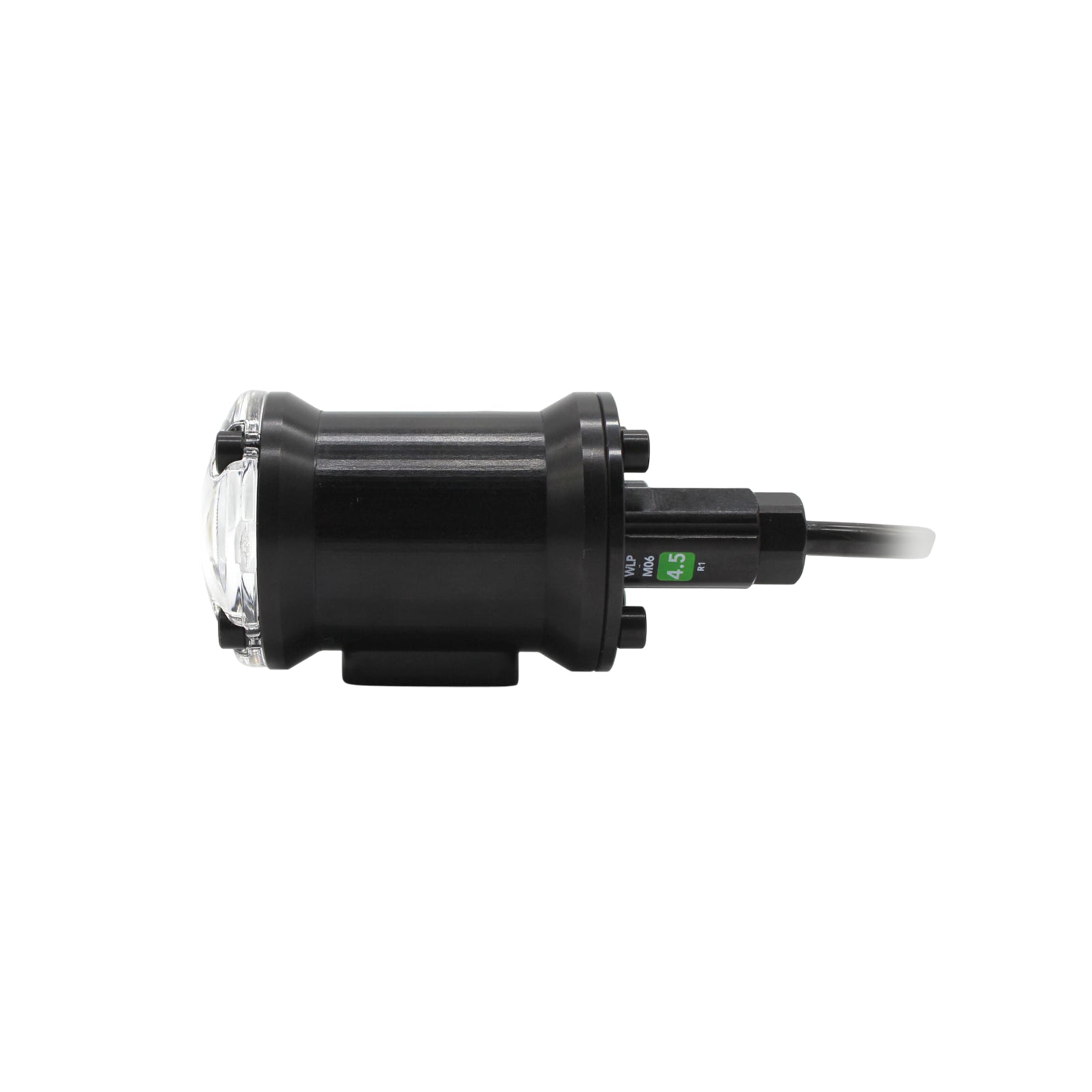 Using a high-efficiency Cree XLamp LED, the light outputs over 1500 lumens at 15 Watts – brighter than most car headlights! It has a 135 degree beam angle for wide illumination in front of an ROV. The color temperature is 5700K, similar to most dive lights and ROV lights.