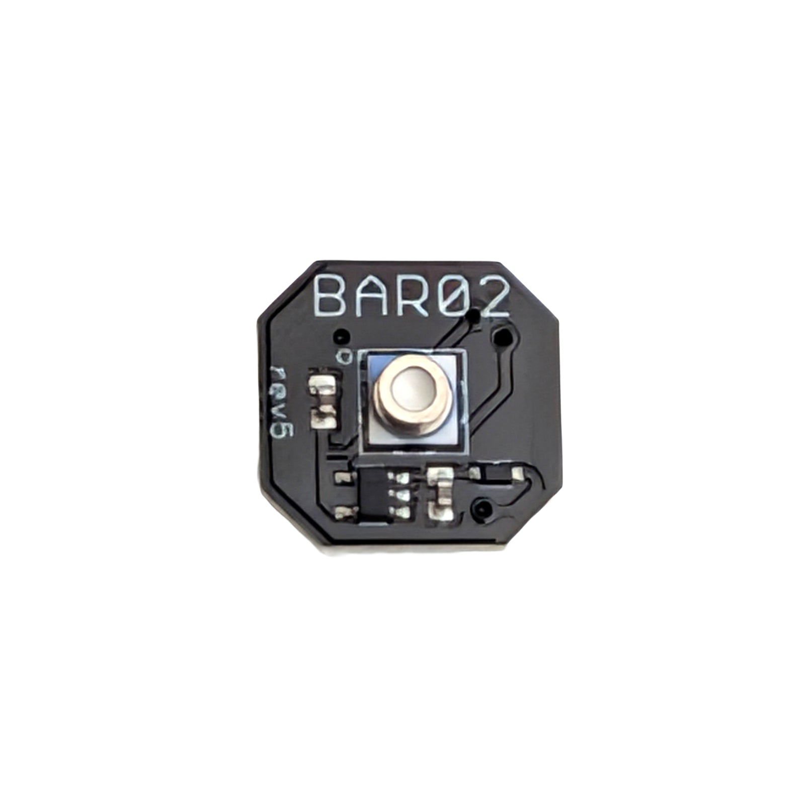 The Bar02 is a low-pressure, ultra-high resolution sensor using the Measurement Specialties MS5837-02BA. It measures up to 2 bar (about 10 meters water depth) with a depth resolution of just 0.16 mm and can also measure in-air altitude with 13 cm resolution. This makes it ideal for shallow-water devices where a high level of resolution is required. It includes a temperature sensor accurate to ±2 °C and is supported in ArduSub 4.7 and later.