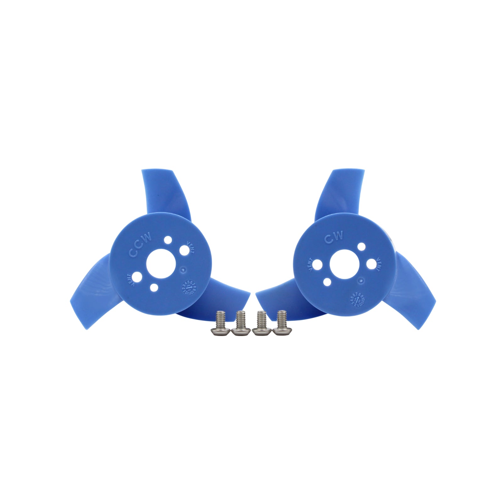 A set of spare replacement propellers for the T200 or T500 thruster. Contains one clockwise propeller, one counter-clockwise propeller and mounting screws.