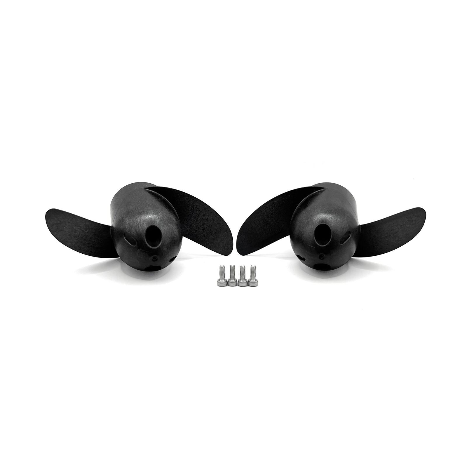 The weedless propeller is made from strong glass-filled polycarbonate and is sold as a set with one clockwise and one counterclockwise propeller. When used together, the two directions cancel out torque from each other, which is especially important on underwater vehicles.